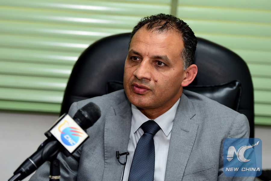 Mohamed Fayez Farahat, head of the Asian Studies program in state-run Ahram Center for Political and Strategic Studies, speaks during an interview with Xinhua in Cairo, Egypt on April 18, 2017.(Xinhua photo)