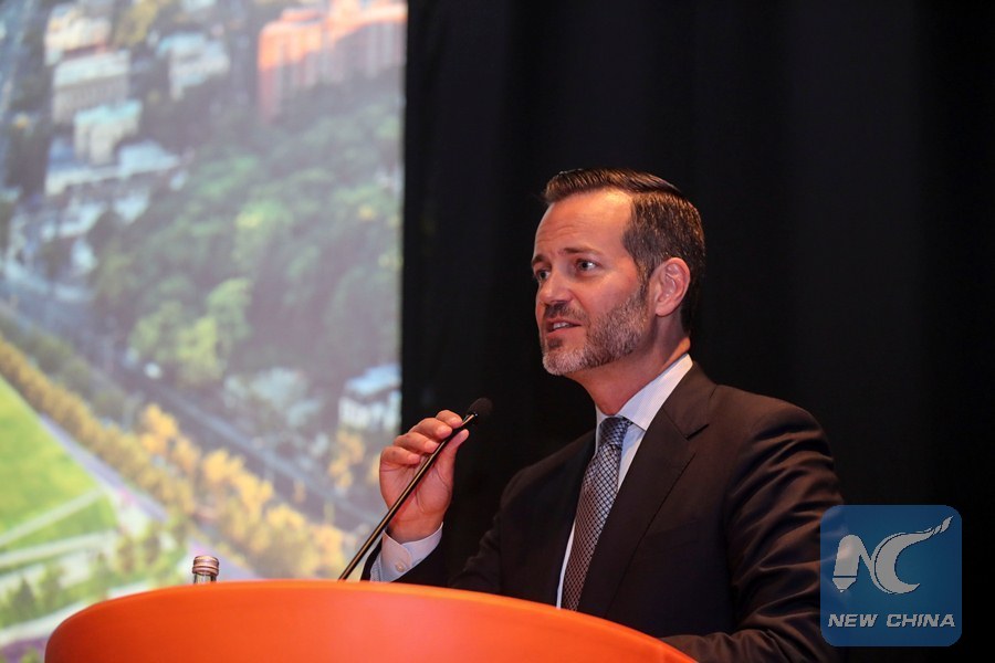 Fred Dixon, President & CEO of NYC & Company, speaks at a press conference in New York, the United States, May 31, 2017. (Xinhua/ Wang Ying)
