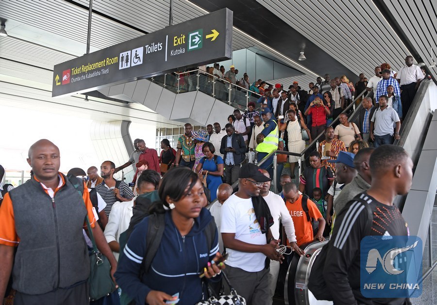 Passengers arrive at the Nairobi train station in Nairobi, Kenya, on June 9, 2017. Nearly 12,000 passengers had traveled on the newly launched Standard Gauge Railways (SGR) linking Kenya's port city Mombasa with its capital Nairobi in the week ending Wednesday, operator said on Thursday. (Xinhua/Chen Cheng)