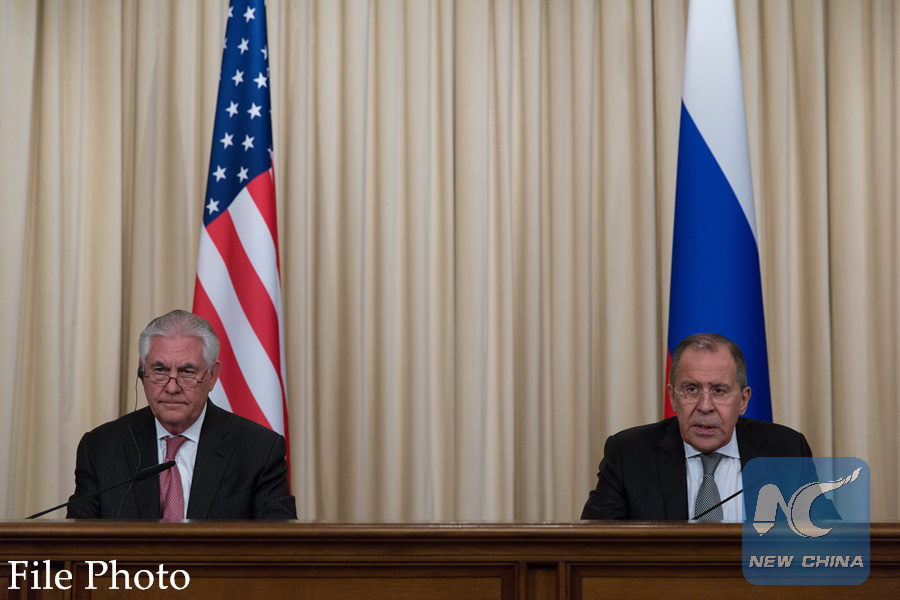 U.S. Secretary of State Rex Tillerson (L) and Russian Foreign Minister Sergei Lavrov attend a joint press conference in Moscow, Russia, on April 12, 2017. (Xinhua/Bai Xueqi)
