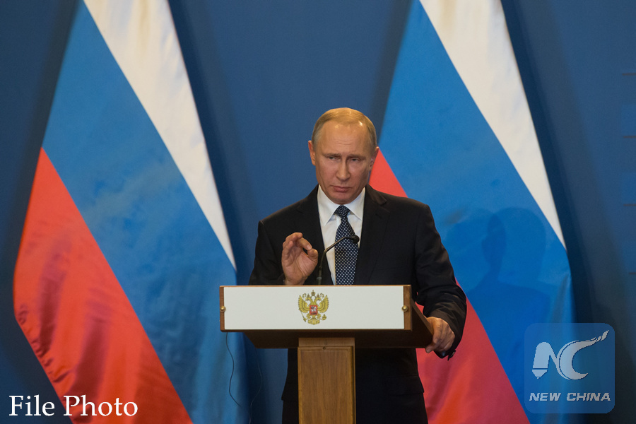 Russian President Vladimir Putin addresses a press conference held with Hungarian Prime Minister Viktor Orban (not in the picture) after their meeting in Budapest, Hungary, on Feb. 2, 2017. (Xinhua/Attila Volgyi)