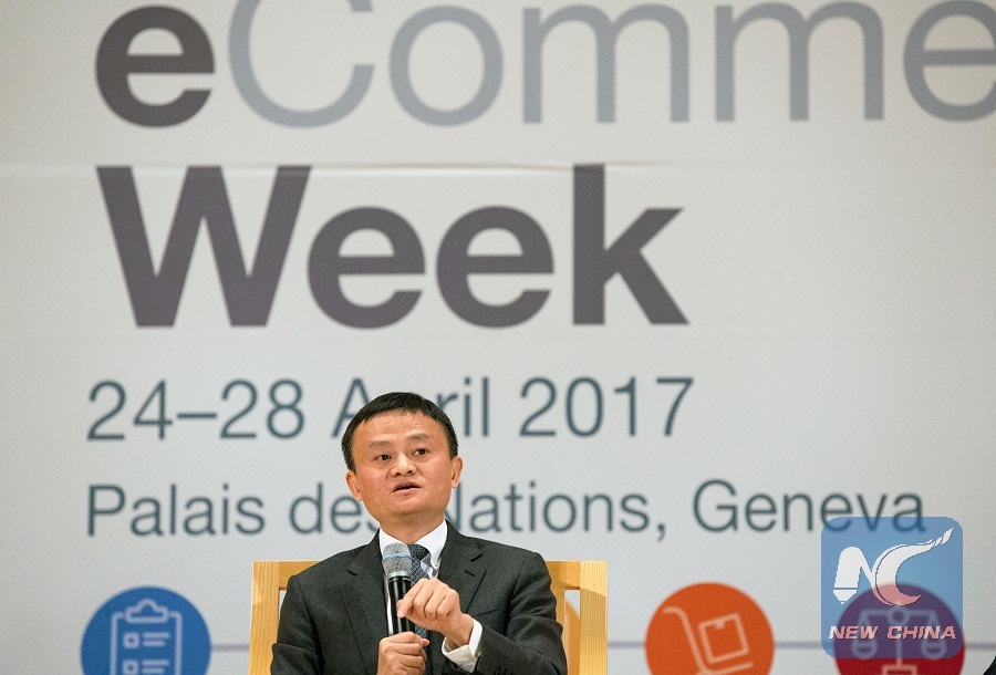 Jack Ma, chairman of Alibaba and special advisor of the UN Conference on Trade and Development (UNCTAD) on youth entrepreneurship and small business, attends a high level e-commerce dialogue in Geneva, Switzerland, on April 25, 2017. (Xinhua/Xu Jinquan)