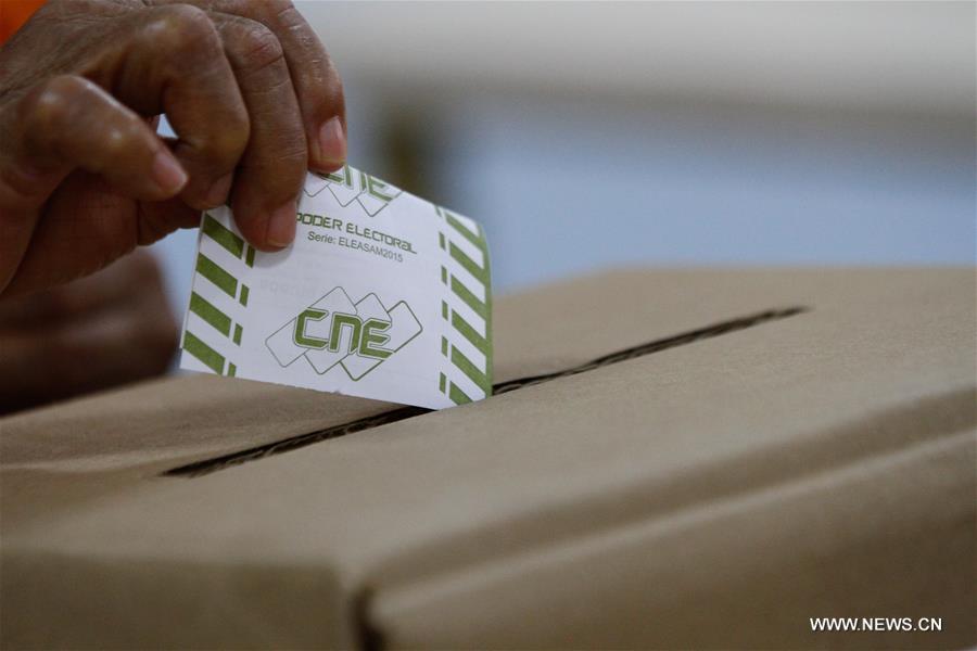 A person casts his vote during the simulation of the July 30 election for the National Constituent Assembly (ANC) in Caracas, Venezuela, on July 16, 2017. Venezuela saw its feuding political factions both prepare polls on Sunday, with the government holding a simulation of the July 30 vote to elect the ANC while the opposition was organizing an unofficial referendum of its own to gauge public support or rejection for the ANC. (Xinhua/Boris Vergara)