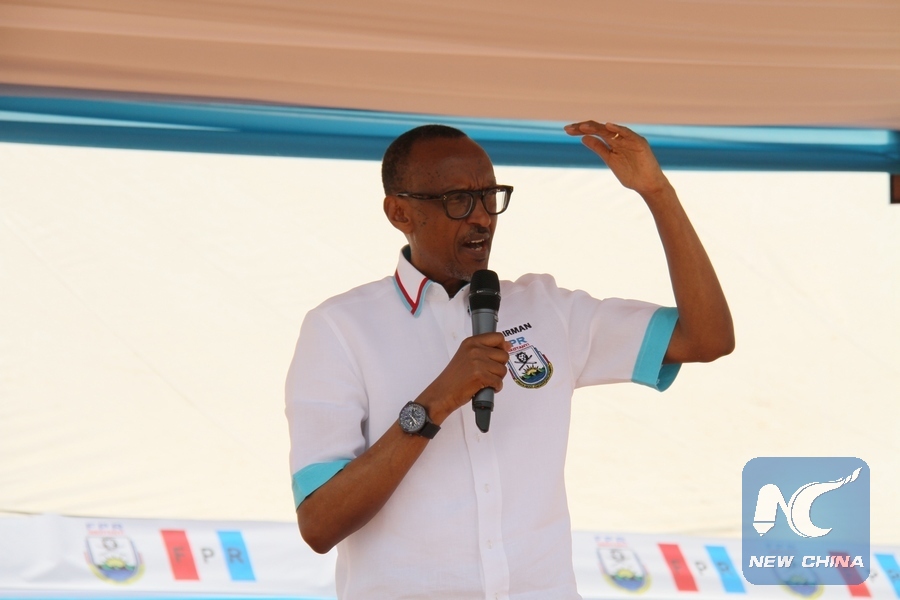 Rwandan presidential candidate Paul Kagame, the incumbent President of Rwanda, speaks at a presidential campaign rally in Ruhango, Rwanda, on July 14, 2017. (Xinhua/Lyu Tianran)
