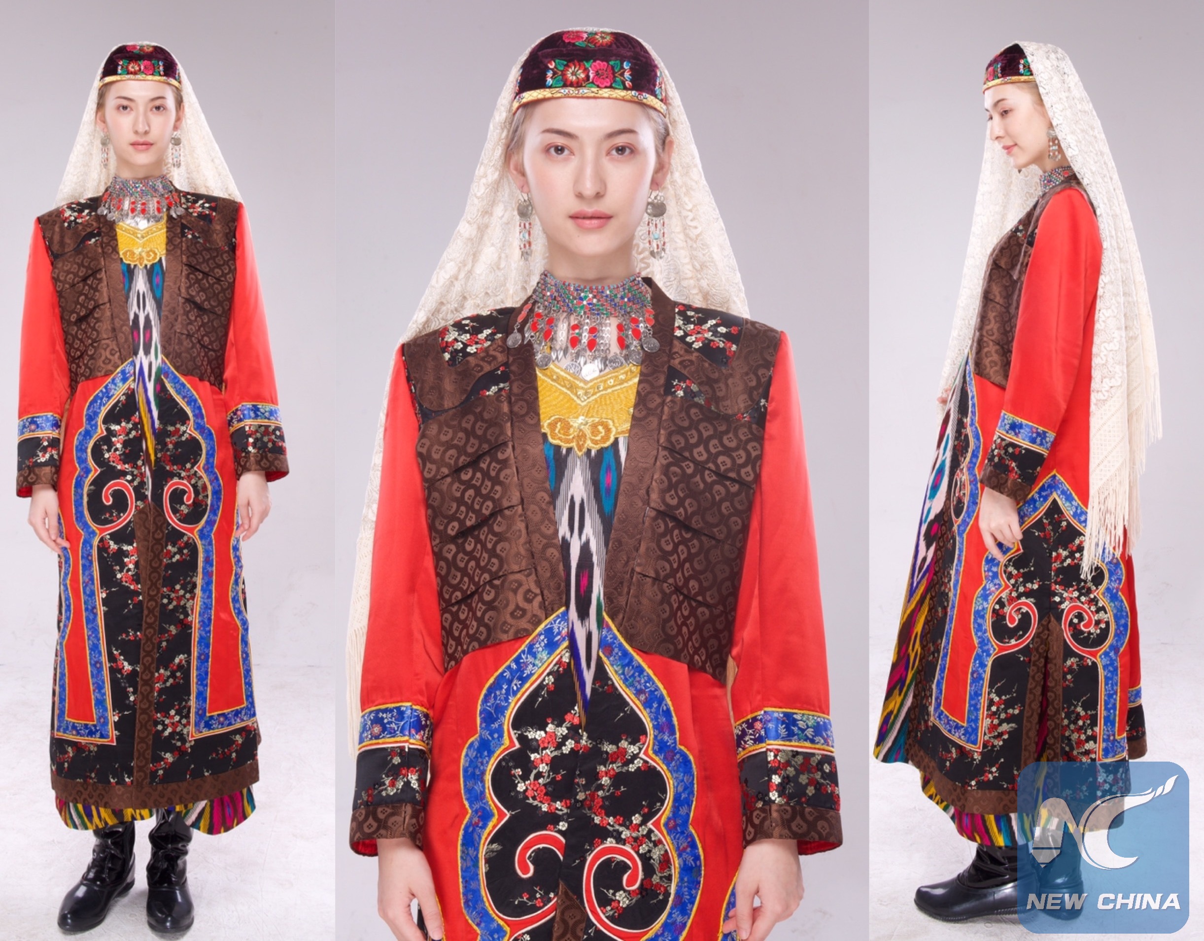 In the video and photos, Mewlan Turaq in Kashgar of Xinjiang Uygur Autonomous Region illustrates the changes of the ethnic styles in his hometown from the 1910s to the 2010s. He wishes to to show the beauty of Uygur women. His reproduction was based on historical documents and old photos. He also got help from Uygur photographer Kurbanjan Samat.