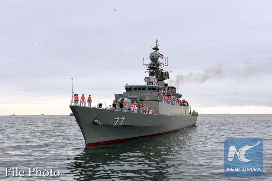 Damavand destroyer of Iranian Navy arrives at Baku port, Azerbaijan, Oct. 19, 2016. Iran's naval fleet, including Damavand destroyer and Joshan missile vessel with 200 navy forces on board arrived here for a three-day visit. (Xinhua/Tofik Babayev)