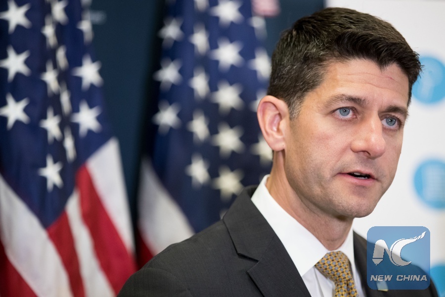 U.S. House Speaker Paul Ryan speaks at a press conference on Capitol Hill in Washington D.C., the United States, on July 25, 2017. (Xinhua/Ting Shen)