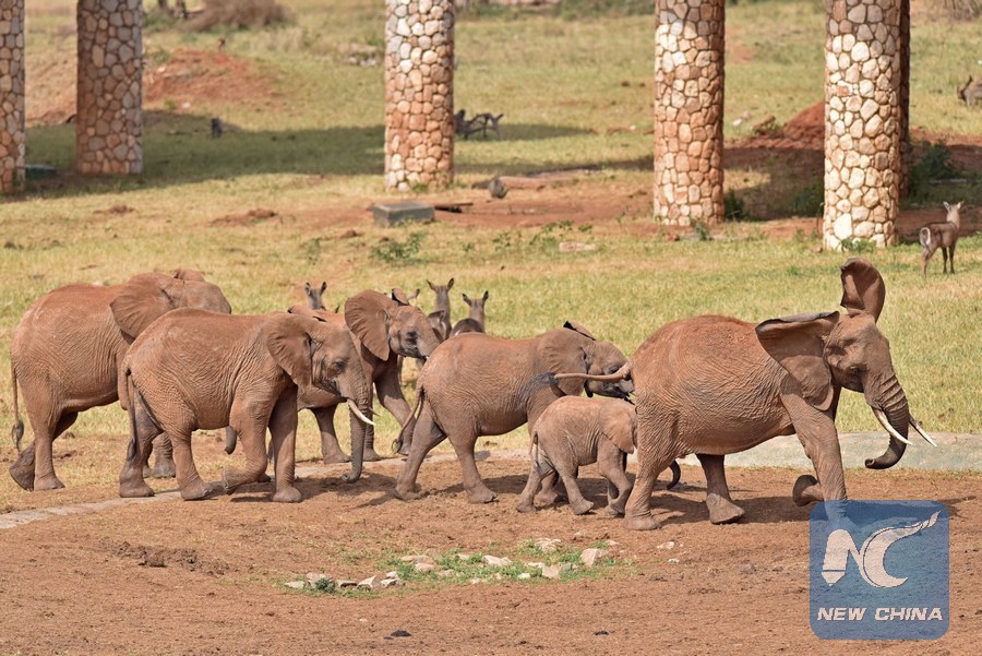 Photo taken on Feb. 22, 2017 shows elephants at the Tsavo West National Park, near Voi, Kenya. (Xinhua/Sun Ruibo)
