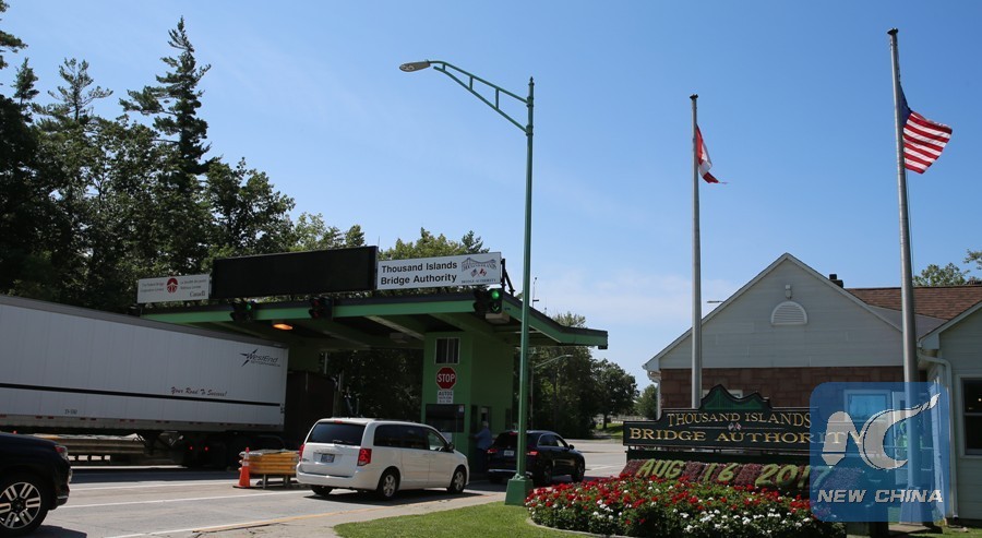 Vehicles enter the United States at the Canadian Thousand Islands Bridge Authority in Kingston, Canada, Aug. 16, 2017. The United States, Canada and Mexico on Wednesday kicked off the first round of renegotiations on the North American Free Trade Agreement (NAFTA) amid widespread uncertainty and anxiety over the future of the decades-old trilateral trade deal. (Xinhua/Li Baodong)