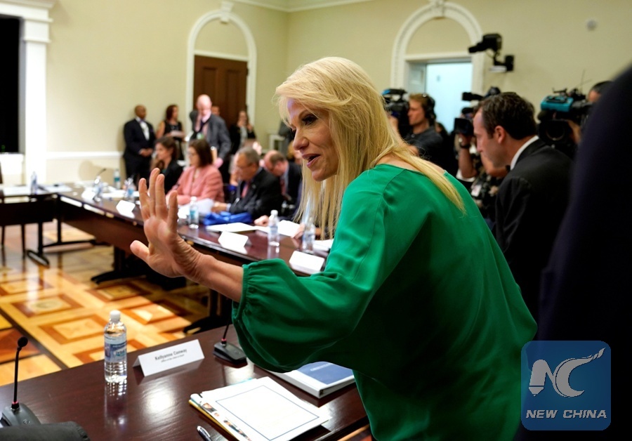 White House Counselor Kellyanne Conway arrives for a meeting with the President's Commission on Combating Drug Addiction and the Opioid Crisis in Washington, U.S., June 16, 2017. (REUTERS/Joshua Roberts)