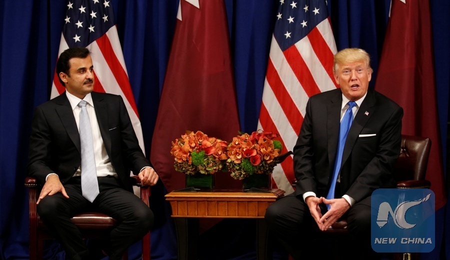 WASHINGTON, Sept. 19 (Xinhua) -- U.S. President Donald Trump and Qatari Emir Tamim bin Hamad Al Thani discussed on Tuesday the importance of resolving Qatar's ongoing dispute with its neighbors and restoring unity in the region, the White House said.