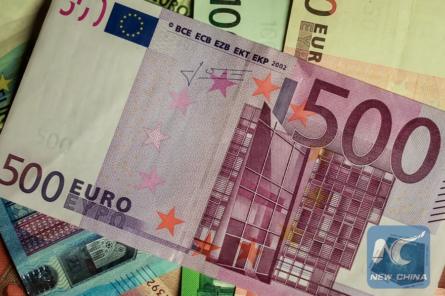 File pic of euro banknotes of different values. (Xinhua/Zhang Fan)