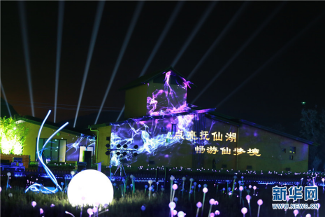 BEIJING, Sept. 28 (Xinhuanet) -- “Time•Imprint” light and shadow show was held on Monday at Fuxian Lake in Chengjiang County in Yuxi City, southwest China's Yunnan Province.