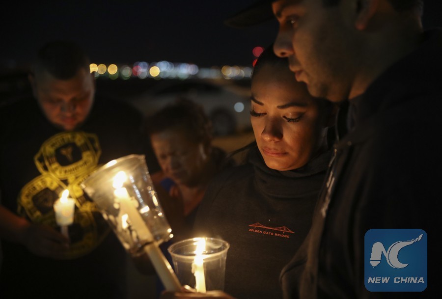 People attend a candle light vigil to mourn the victims of a mass shooting in Las Vegas, the United States, on Oct. 2, 2017. (Xinhua/Wang Ying)