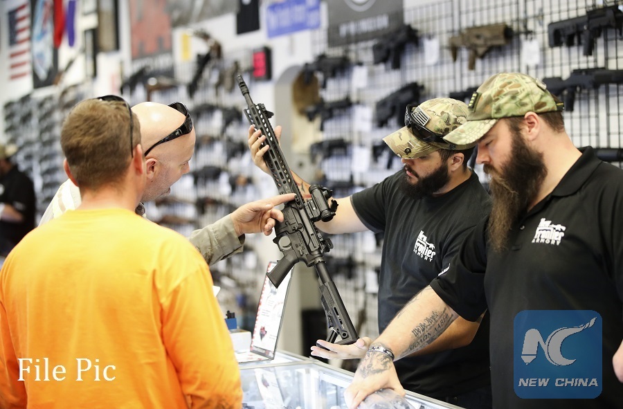 People purchase firearms in a gun shop in Las Vegas, the United States, on Oct. 4, 2017. (Xinhua/Wang Ying)