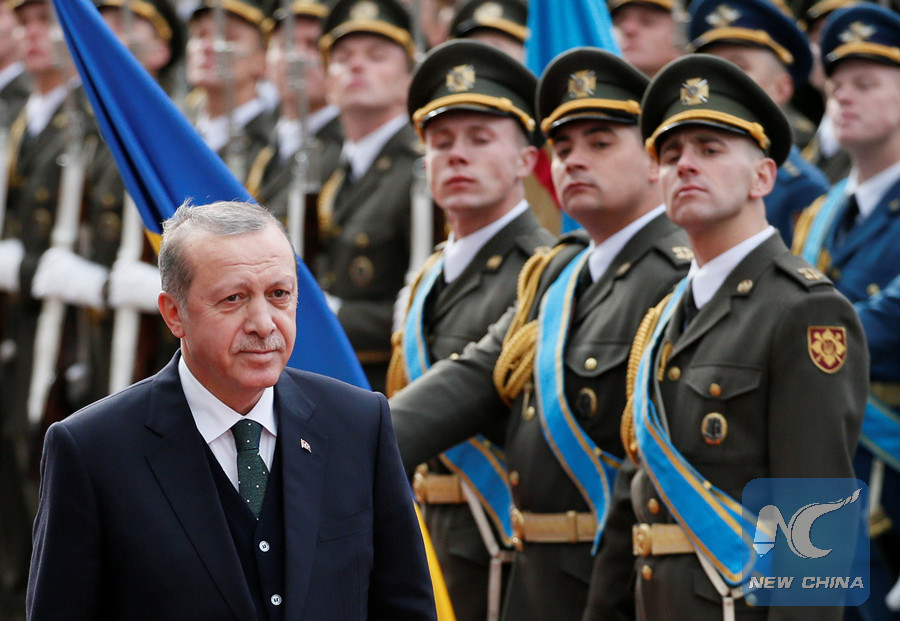 Turkish President Tayyip Erdogan reviews an honour guard during a welcoming ceremony hosted by Ukrainian President Petro Poroshenko in Kiev, Ukraine October 9, 2017. (REUTERS PHOTO)
