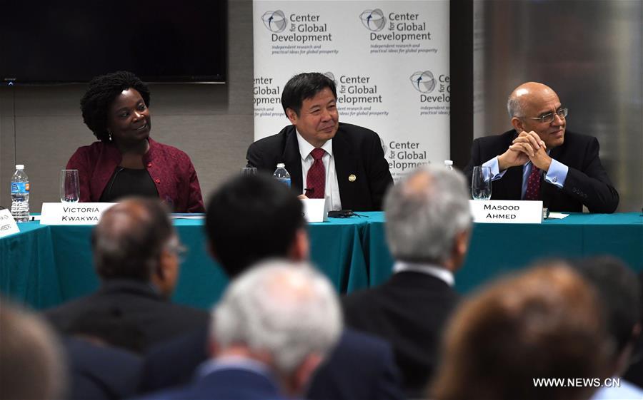 China's Vice Finance Minister Zhu Guangyao (C) attends a high-level seminar on the Belt and Road Initiative in Washington D.C., the United States, on Oct. 12, 2017. China's stable and healthy economic growth mainly stems from major progress in economic reform and the government's ability to maintain a stable macroeconomic policy, Chinese Vice Finance Minister Zhu Guangyao said Thursday.(Xinhua/Yin Bogu)
