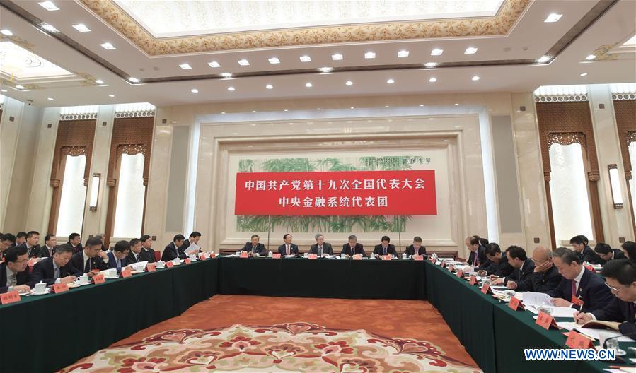 The delegation of the central financial organs to the 19th National Congress of the Communist Party of China (CPC) holds a discussion in Beijing, capital of China, Oct. 19, 2017. (Xinhua/Chen Jianli)