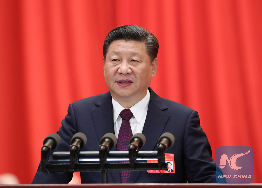 Xi Jinping delivers a report to the 19th National Congress of the Communist Party of China (CPC) on behalf of the 18th Central Committee of the CPC at the Great Hall of the People in Beijing, capital of China, Oct. 18, 2017. (Xinhua/Ma Zhancheng)