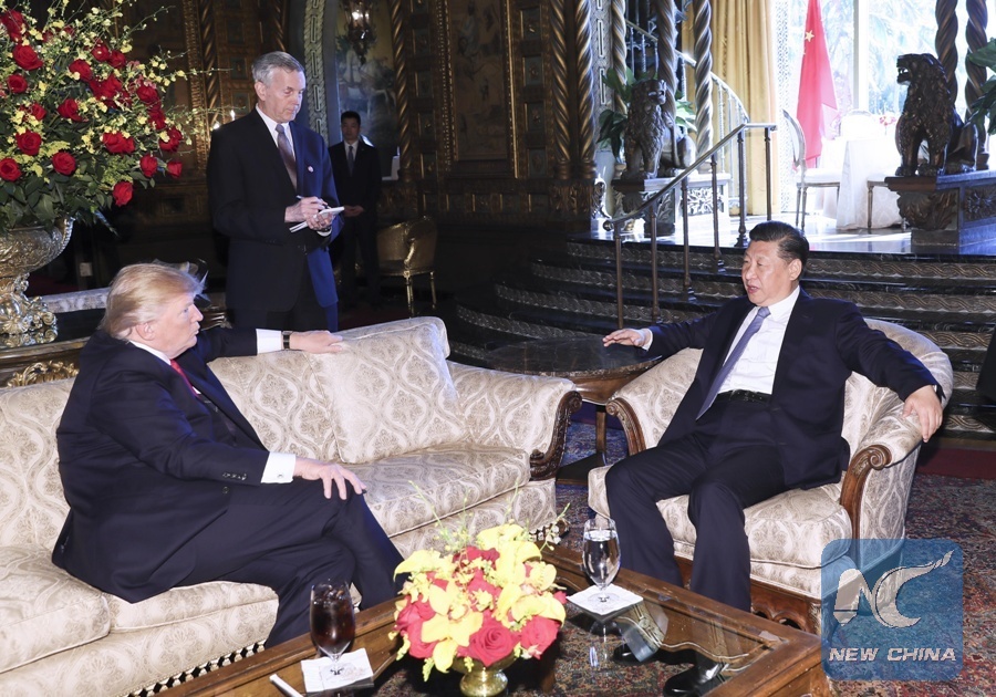 File Photo: Chinese President Xi Jinping (R) and his U.S. counterpart Donald Trump (L) hold the second round of talks in the Mar-a-Lago resort in Florida, the United States, April 7, 2017. (Xinhua/Lan Hongguang)