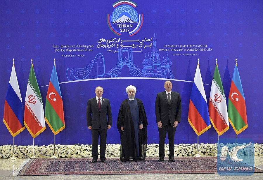 Russia's President Vladimir Putin, Iran's President Hassan Rouhani and Azerbaijan's President Ilham Aliyev pose for a picture during a meeting in Tehran, Iran November 1, 2017. (Reuters Photo)