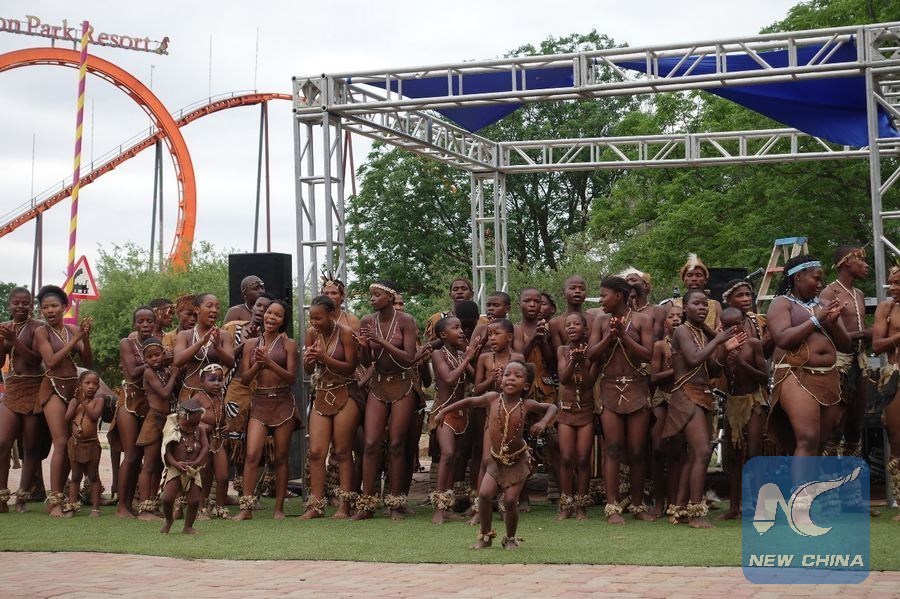 Batswana traditional dancers perform in Gaborone, capital of Botswana, Oct. 28, 2017.(Xinhua/Yang Mengxi)