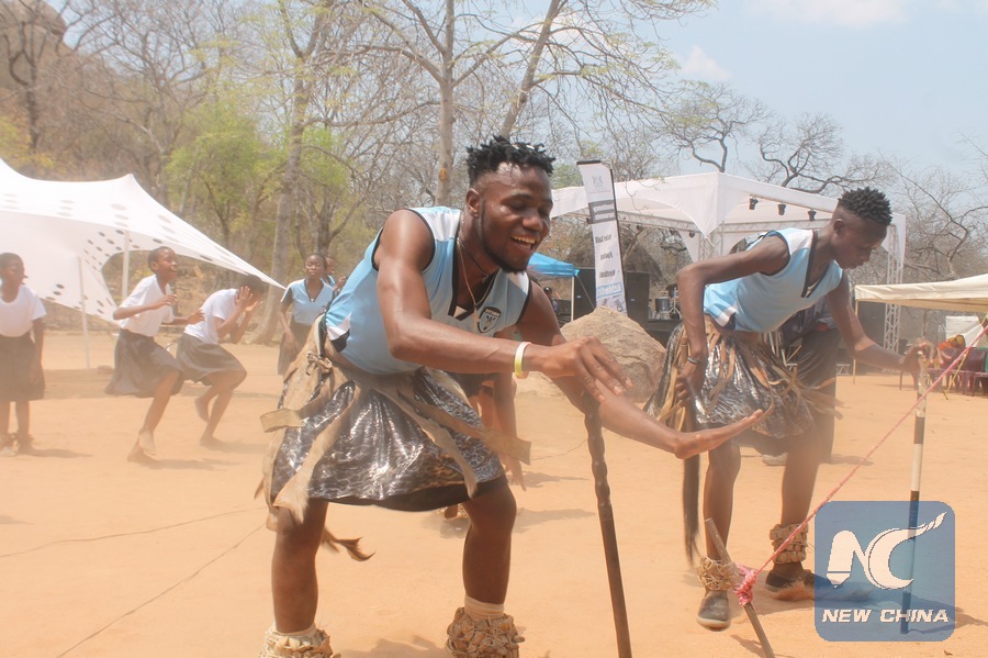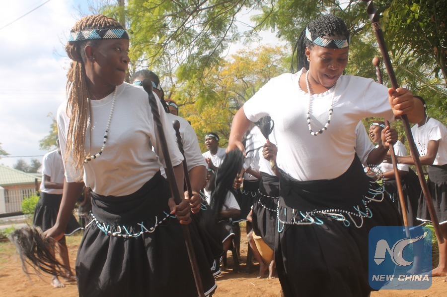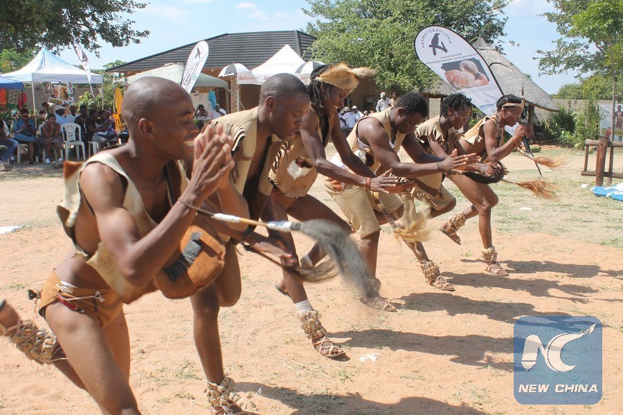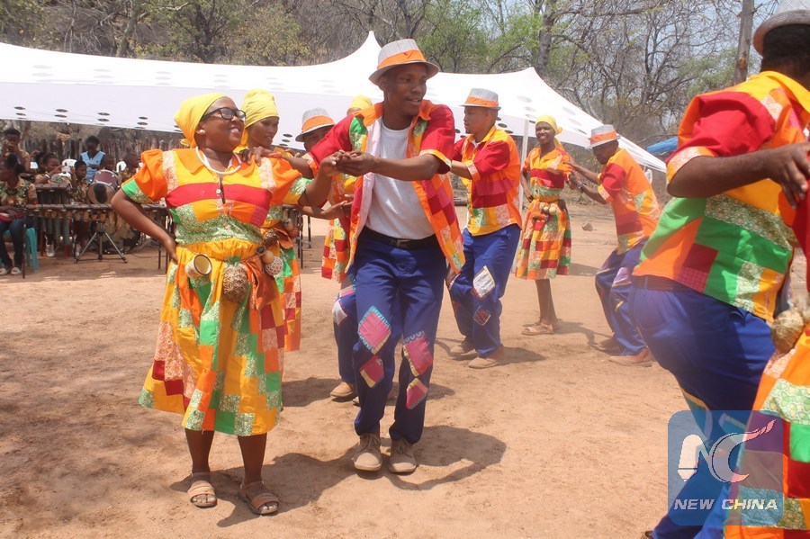 A traditional dance group perform during the 2017 Domboshaba Cultural Festival near Francistown, Botswana, Oct. 1, 2017. (Xinhua)