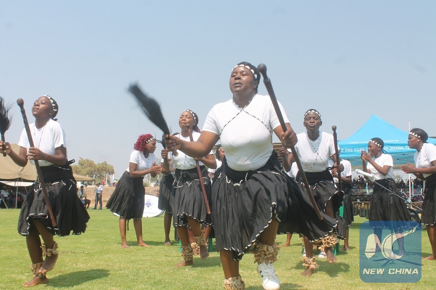 A traditional dance group performs during the Independence Day celebrations in Francistown, about 450 kilometers northeast of Gaborone, capital of Botswana, Sept. 30, 2017.(Xinhua/Shingirai Madondo)