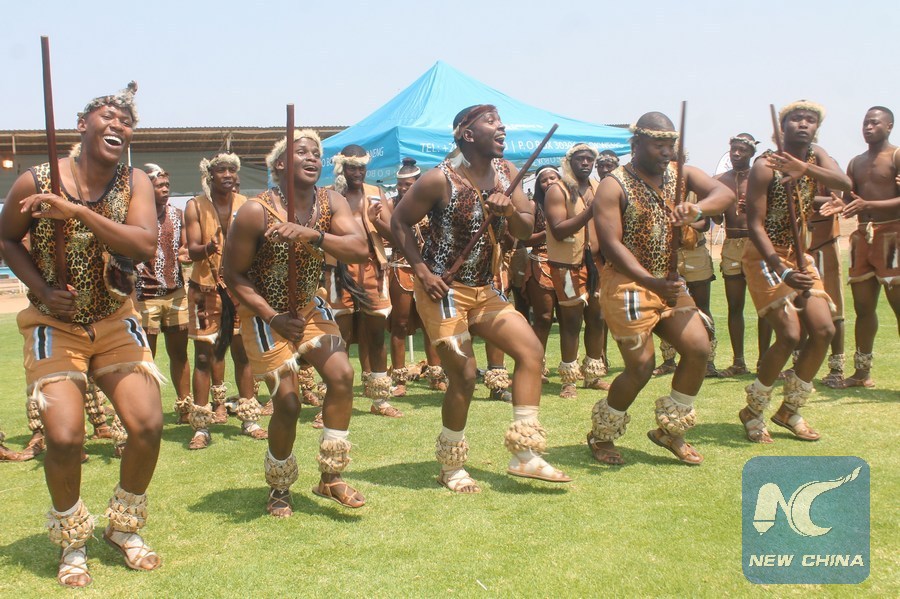 A traditional dance troupe perform at the 2015 Northern Letlhafula Cultural Festival in Francistown, Botswana's second largest city some 430km north of the capital, Gaborone on April 24, 2015.(Xinhua/Shingirai Madondo)
