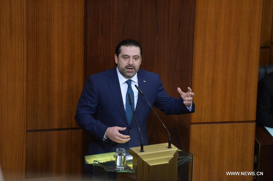 Lebanese Prime Minister Saad Hariri makes a statement at the parliament in Beirut, capital of Lebanon, on Dec. 28, 2016.(Xinhua file photo)