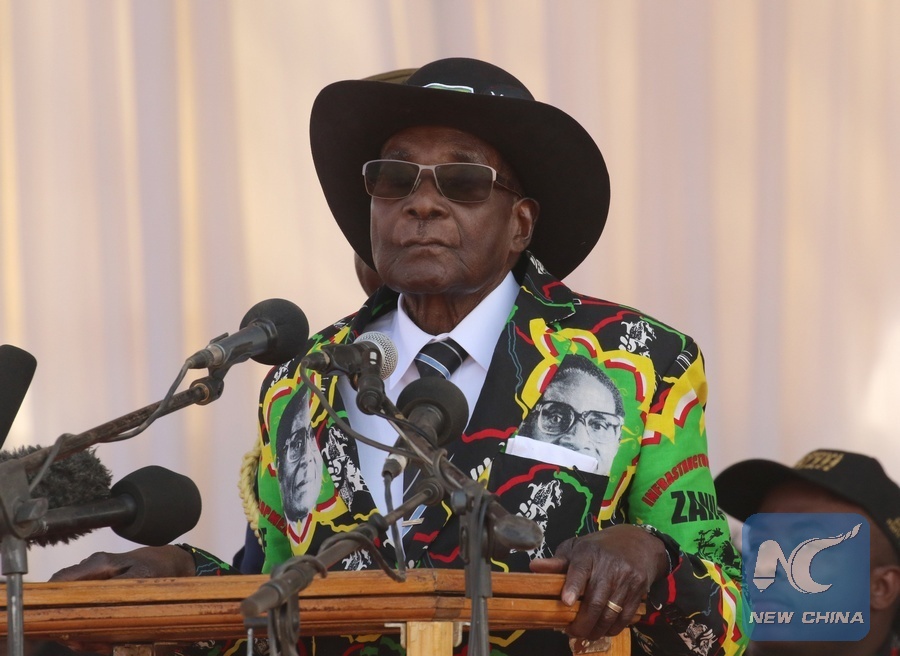 File photo shows Zimbabwean President Robert Mugabe addresses a youth interface rally in Gweru, Zimbabwe, Sept. 1, 2017. (Xinhua/Stringer)