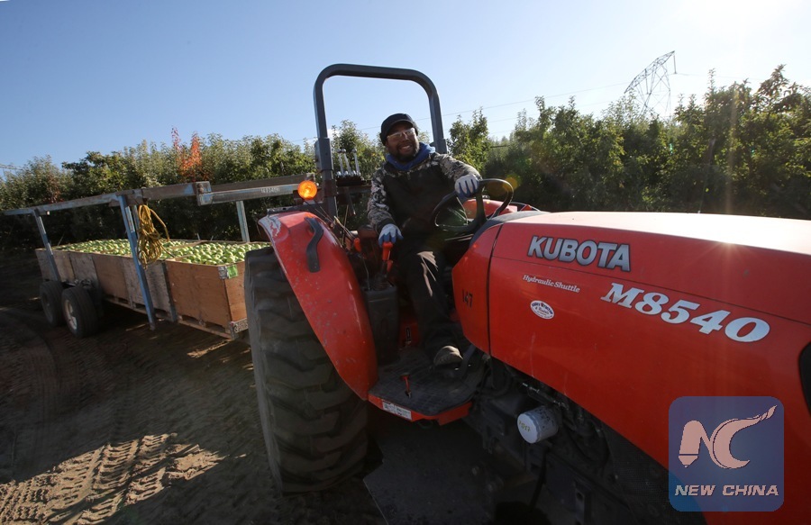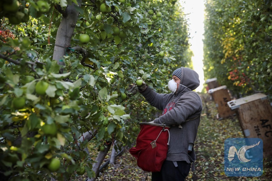 WENATCHEE, the United States, Nov. 7 (Xinhua) -- In an apple orchard owned by Auvil Fruit Company in northwestern U.S. city of Wenatchee, a dozen workers were picking the best Granny Smith apples that will reach Chinese consumers in less than three weeks.