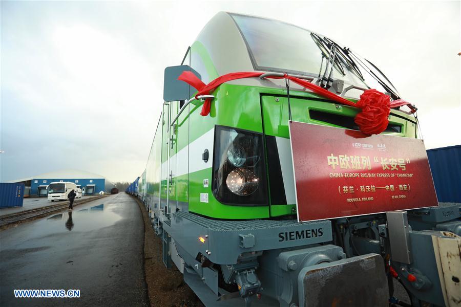 KOUVOLA, Finland, Nov. 10 (Xinhua) -- With more than 40 containers on it, the cargo train bound for Chinese inland city of Xi'an departed Kouvola, southeastern Finland, on Friday.