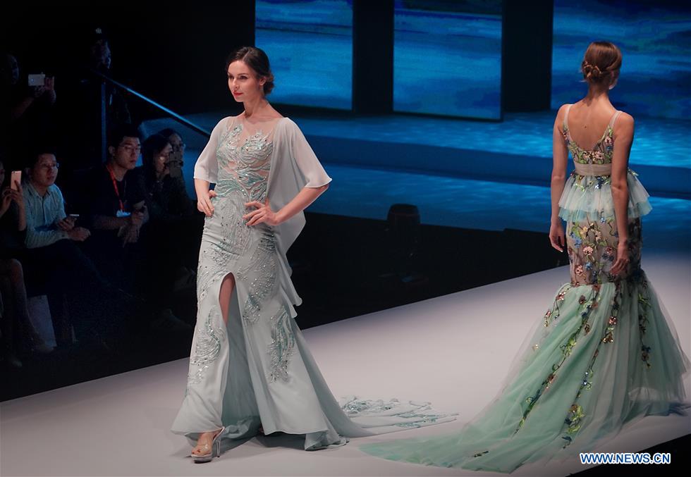 Models present creations during the 2017 China (Chaozhou) International Wedding & Evening Dress Week in Chaozhou, south China's Guangdong Province, Nov. 10, 2017. (Xinhua/Li An)