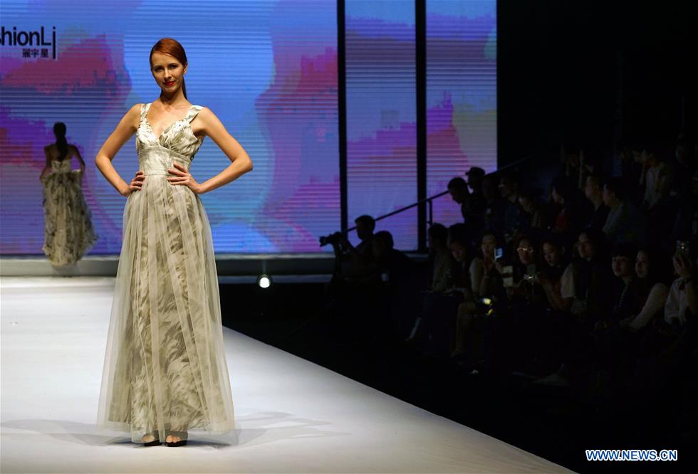 A model presents a creation during the 2017 China (Chaozhou) International Wedding & Evening Dress Week in Chaozhou, south China's Guangdong Province, Nov. 10, 2017. (Xinhua/Li An)