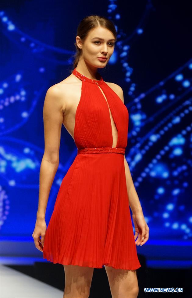 A model presents a creation during the 2017 China (Chaozhou) International Wedding & Evening Dress Week in Chaozhou, south China's Guangdong Province, Nov. 10, 2017. (Xinhua/Li An)