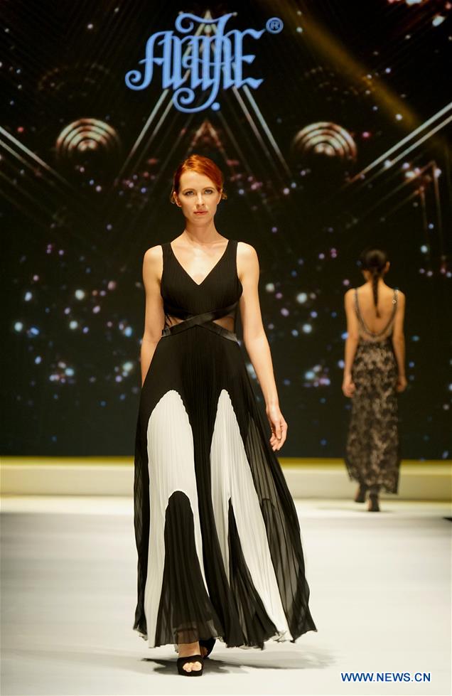 A model presents a creation during the 2017 China (Chaozhou) International Wedding & Evening Dress Week in Chaozhou, south China's Guangdong Province, Nov. 10, 2017. (Xinhua/Li An)