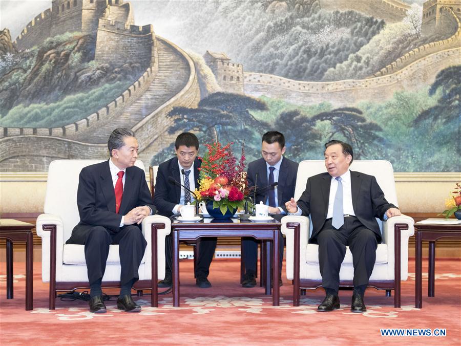 BEIJING, Nov. 15 (Xinhua) -- Wang Chen, a member of the Political Bureau of the Communist Party of China (CPC) Central Committee, on Wednesday met with former Japanese prime minister Yukio Hatoyama in Beijing.
