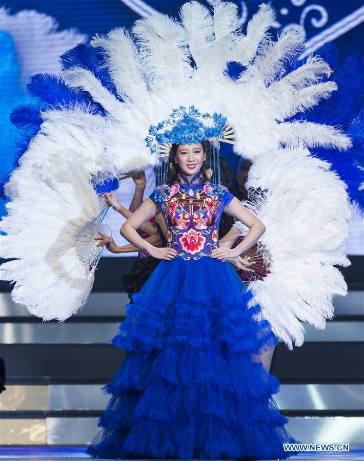 Contestant Tiffany Choi poses on stage during the 2017 Miss Chinese Toronto Pageant final in Toronto, Canada, Nov. 24, 2017. Tiffany Choi, 23 years old, was crowned the 2017 Miss Chinese Toronto on Friday. (Xinhua/Zou Zheng)