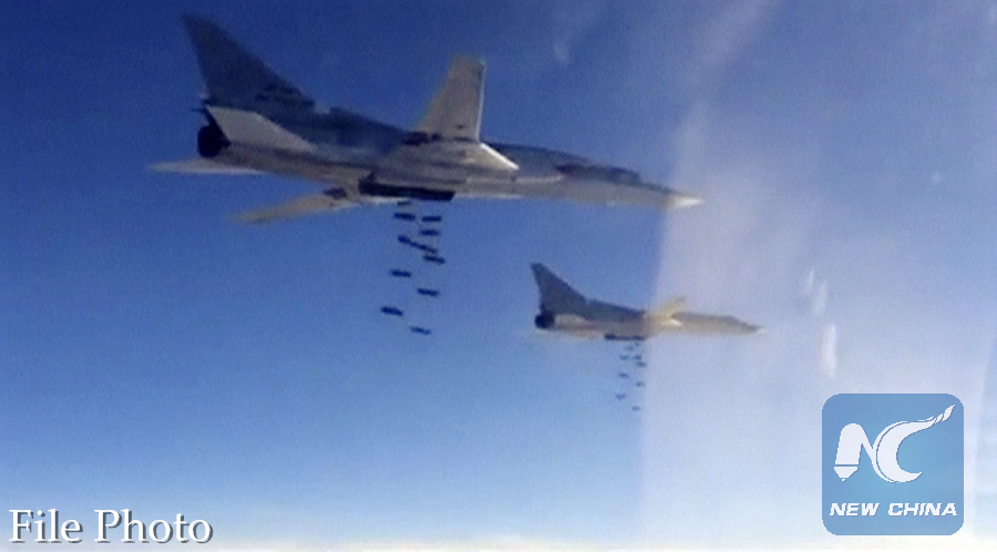 MOSCOW, Dec. 3 (Xinhua) -- Russian strategic bombers continued to strike Islamic State (IS) terrorists in Syria on Sunday, the Russian Defense Ministry said in a statement.