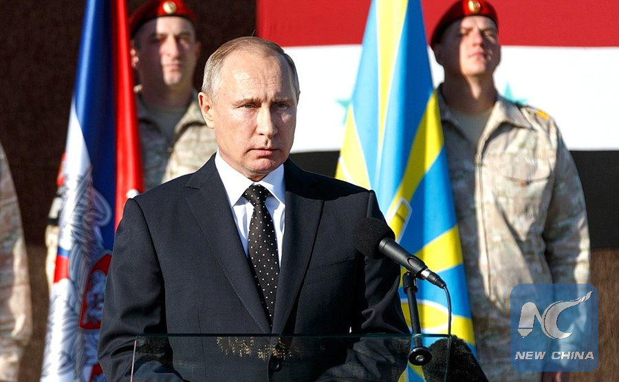 MOSCOW, Dec. 11 (Xinhua) -- Russia will pull most of its troops out of Syria after claiming a victory against the Islamic State (IS) but will maintain an airbase and a naval base in the war-torn country, President Vladimir Putin announced Monday.