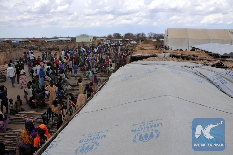 Refugees from South Sudan wait to be settled outside the Khour Al-Waral refugee camp in Al-Salam locality, some 69-kilometers south of Rebek, capital of White Nile State, Sudan, May 18, 2017. (Xinhua/Mohamed Babiker)