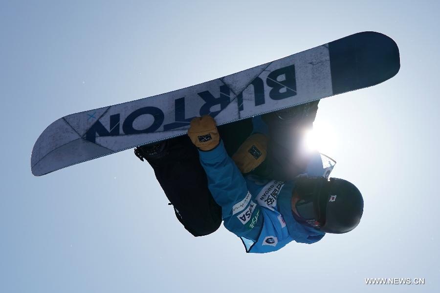 Japan's Katayama Raibu competes during the men's competition of 2017-2018 FIS Snowboard Halfpipe World Cup held at Genting Resort Secret Garden in Chongli District of Zhangjiakou City, north China's Hebei Province, Dec. 21, 2017. Katayama Raibu won the second place of the event with 90.75 points.(Xinhua/Ju Huanzong)