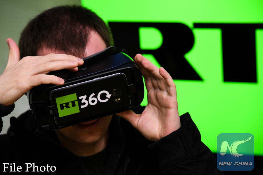 This file photo taken on November 01, 2017 shows a man trying on a VR goggles at the stand of Russia's state-controlled broadcaster RT during the 10th Russian Internet Week in Moscow. (AFP PHOTO)