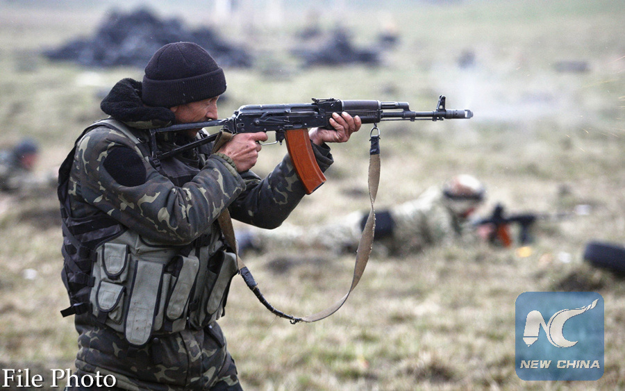 A fighter of Ukrainian volunteers Donbas battalion practices shooting during military drills not far southeastern Ukrainian city of Mariupol, on April 1, 2015. (AFP PHOTO)