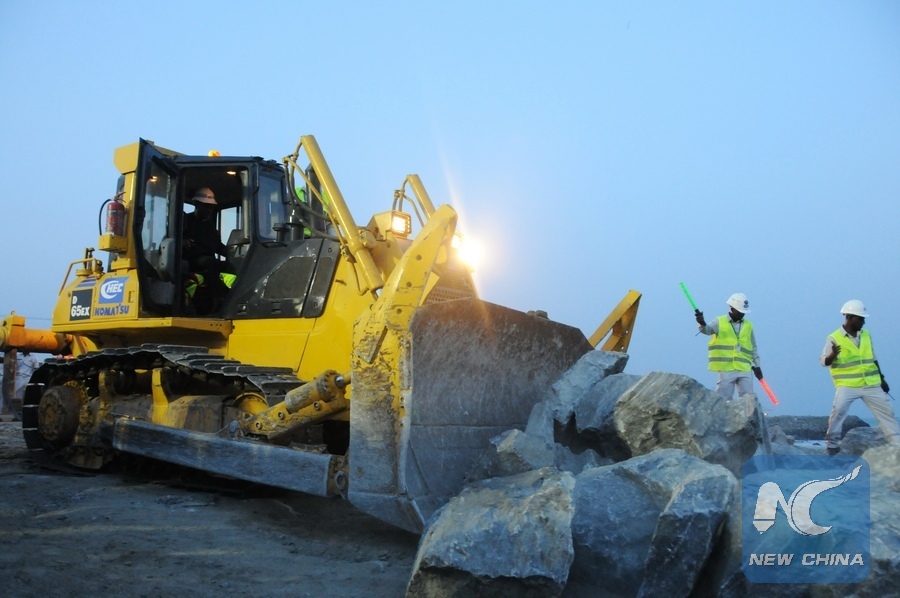 Photo taken on Nov. 16, 2016 shows the construction site of expansion of Ghana's eastern port of Tema in Tema, Ghana. The China Harbor Engineering Company (CHEC) has been contracted to undertake expansion of Ghana's eastern port of Tema. (Xinhua/Shi Song)