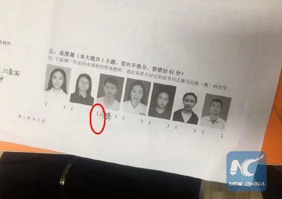 In the final exam of an Ideological, Moral Cultivation and Legal Basis course, students in Sichuan Vocational College of Culture and Communication were asked to identify the course teacher from seven ID photos on the paper.