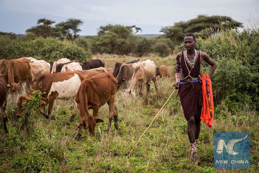A Masai man herds his cattle near Amboseli National Park, Kenya, Jan. 9, 2018. (Xinhua/Lyu Shuai)