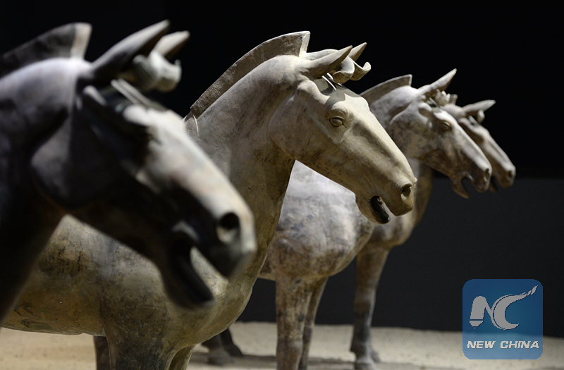 Terracotta warriors are the best-known historical relics in Shaanxi. They were unearthed from the tomb of Emperor Qinshihuang, China's first emperor, who lived between 259-210 B.C.