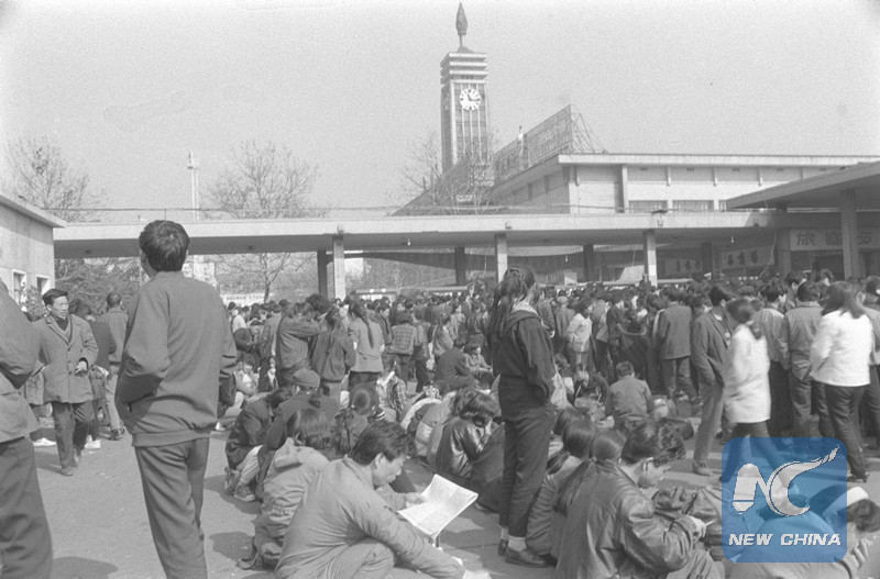 People wait outside Changsha Railway Station to get tickets in 1994. (Xinhua/Long Qiyun)